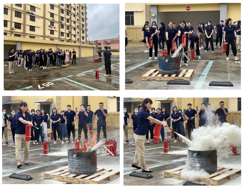 集中培训结束后,由室内转向室外进行了消防演习实操。整个演练过程在教官的指导下有序进行,全面展现了从火灾发生、处置、撤离等实战全过程 。同时 ,现场教学干粉灭火器的正确使用方法、操作程序和注意事项。参加演练人员先后手持消防灭火设备 ,对火焰进行灭火。