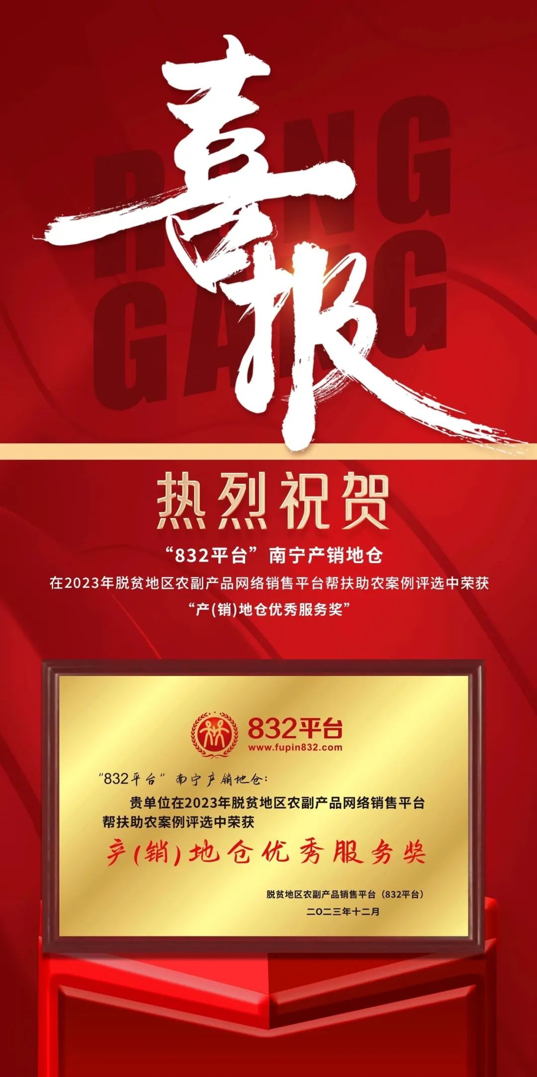 喜报 !“832平台”南宁产销地仓荣获2023年“产(销)地仓优秀服务奖”