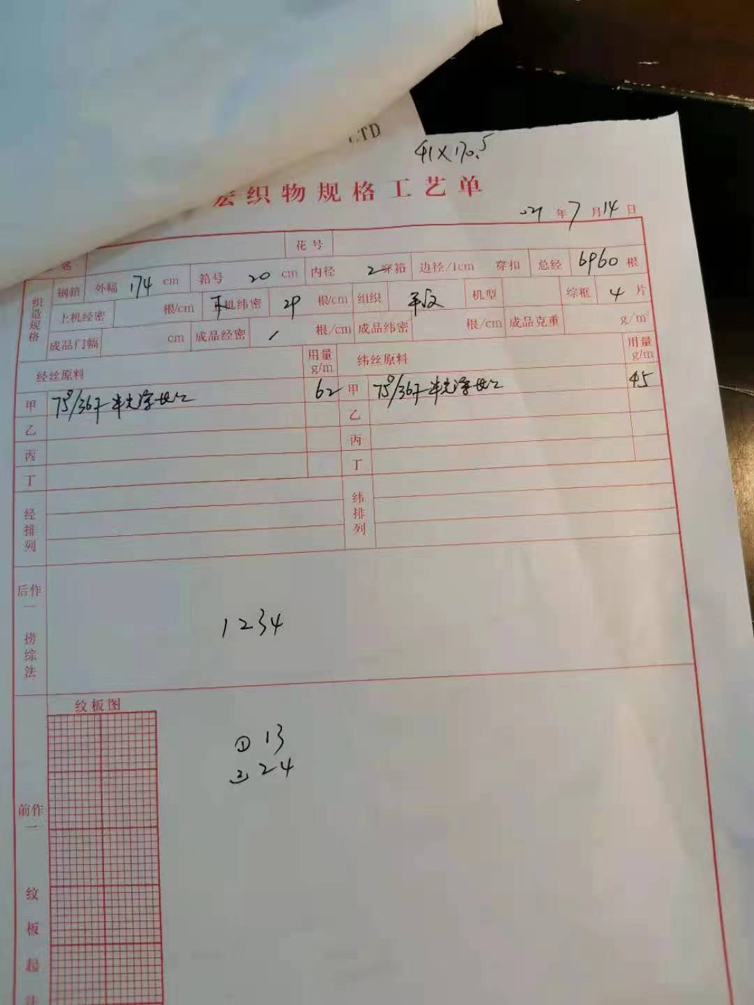 坯布阶段 :测量坯布纱支密度 ,克重等详细规。